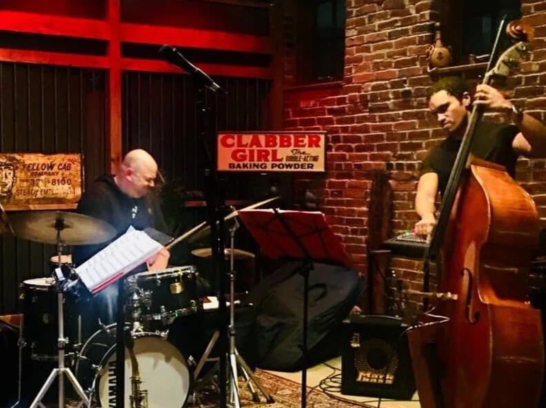 Scott Boni, Sax; Paul Thompson, bass, David Throckmorton, Drums