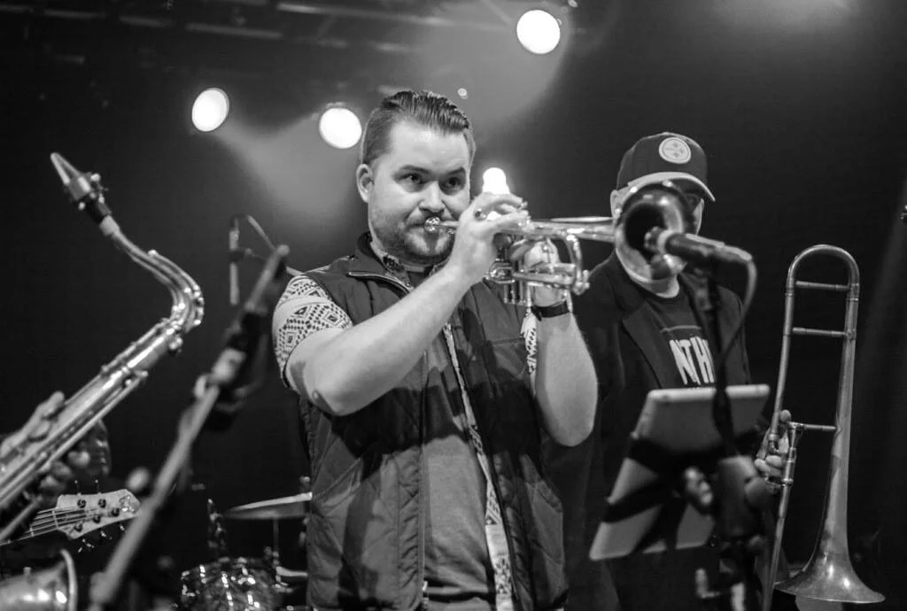 JD Chaisson, trumpet; Reggie Watkins, trombone; John Shannon, guitar; Bob Insko, bass; Alex Peck, drums