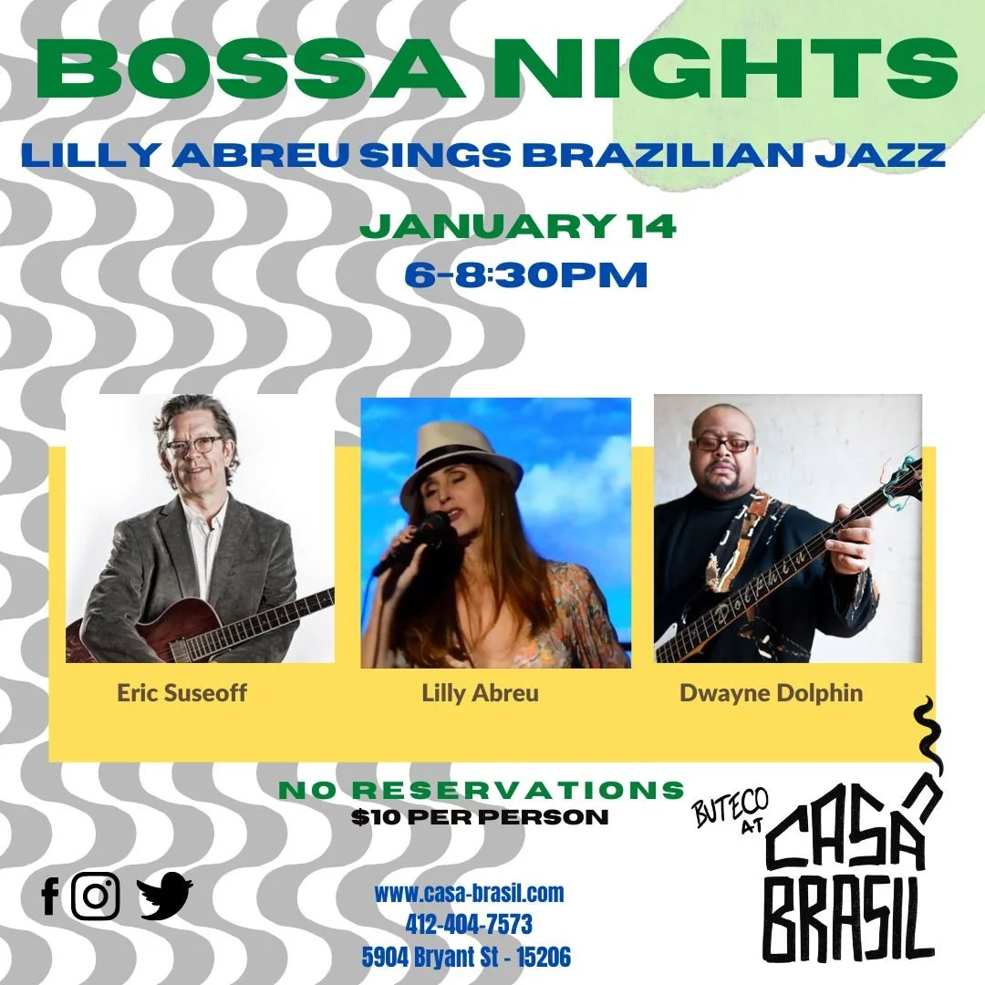 January 14th - vocalist Lilly Abreu with Eric Suseoff, guitar; and Dwayne Dolphin, bass at Casa Brasil, Highland Park
