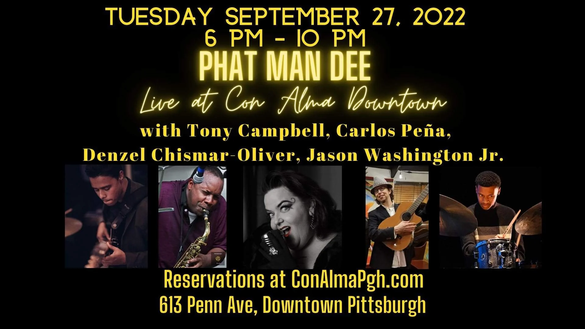 Tony Campbell - sax; Carlos Peña - guitar; Denzel Chismar-Oliver - bass; Jason Washington Jr. - drums