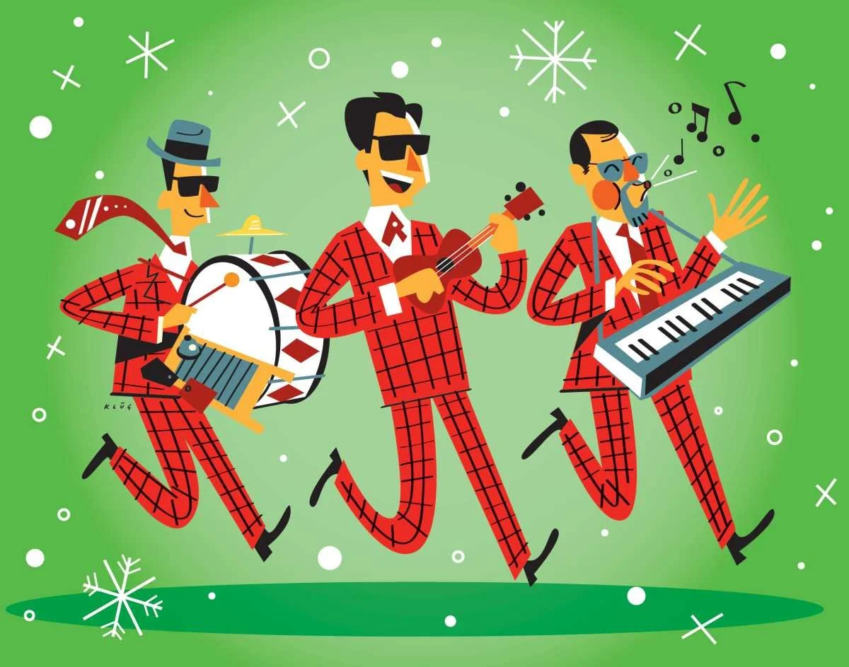 The Combo features Tom Roberts on piano, whistling, vocals, and kazoo; Dave Klug on drums and custom-built Kluger Soundboard; and Wayno on vocals, harmonica, & ukulele.