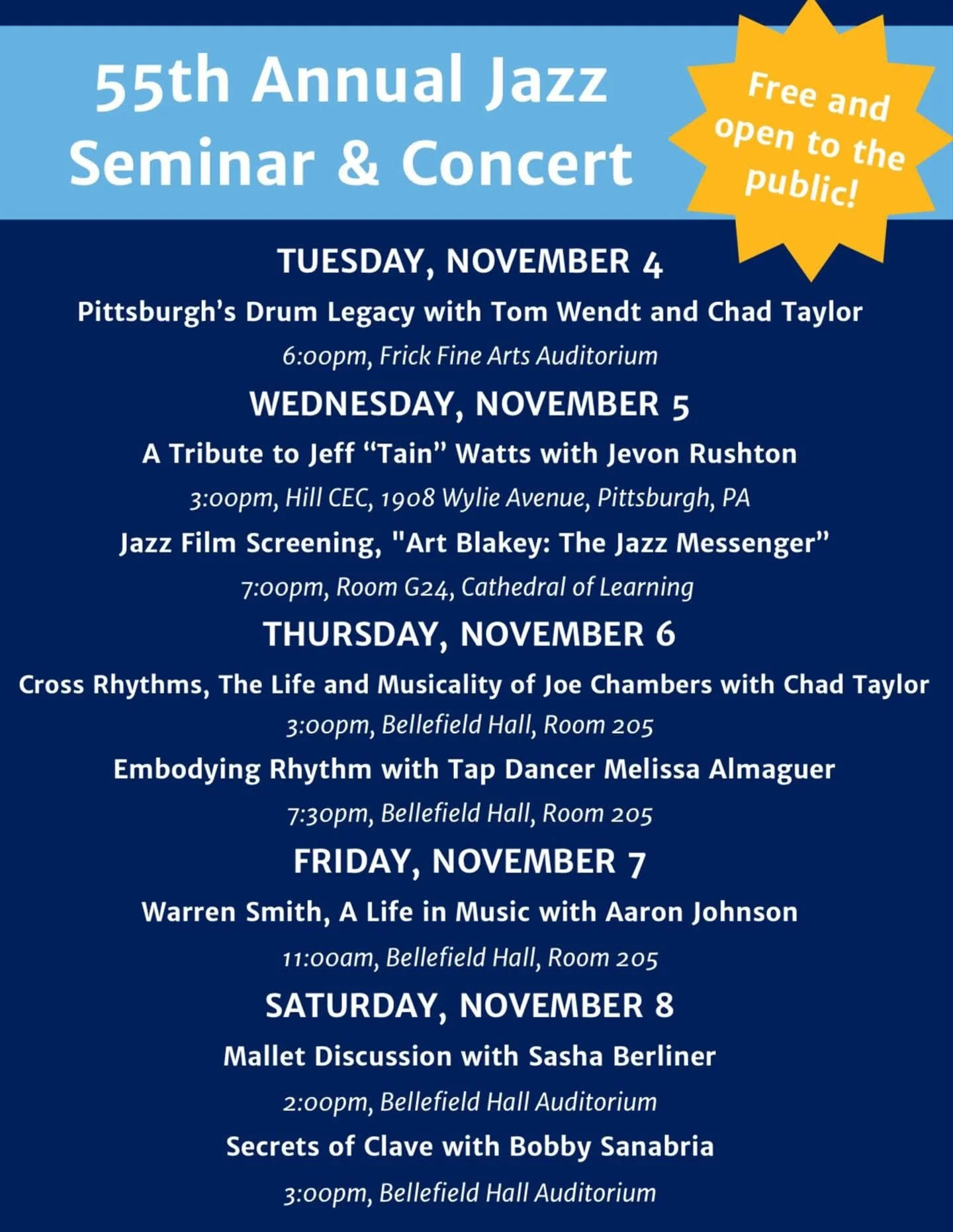 8:00pm- 55th Annual Pitt Jazz Concert, Bellefield Hall Auditorium, TICKETED EVENT - PURCHASE HERE!