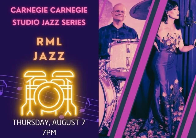 Studio Jazz Series: RML Jazz - Carnegie in Carnegie Thursday, August 7, 2025 7:00 PM 9:00 PM 19:00 21:00 Carnegie Libarary and Music Hall 300 Beechwood Avenue Carnegie, PA, 15106 United States (map) Google Calendar ICS Studio Jazz Series: RML Jazz - Carnegie in Carnegie Laura Chu Wiens, vocals; Rick Laus - drums and RML Jazz